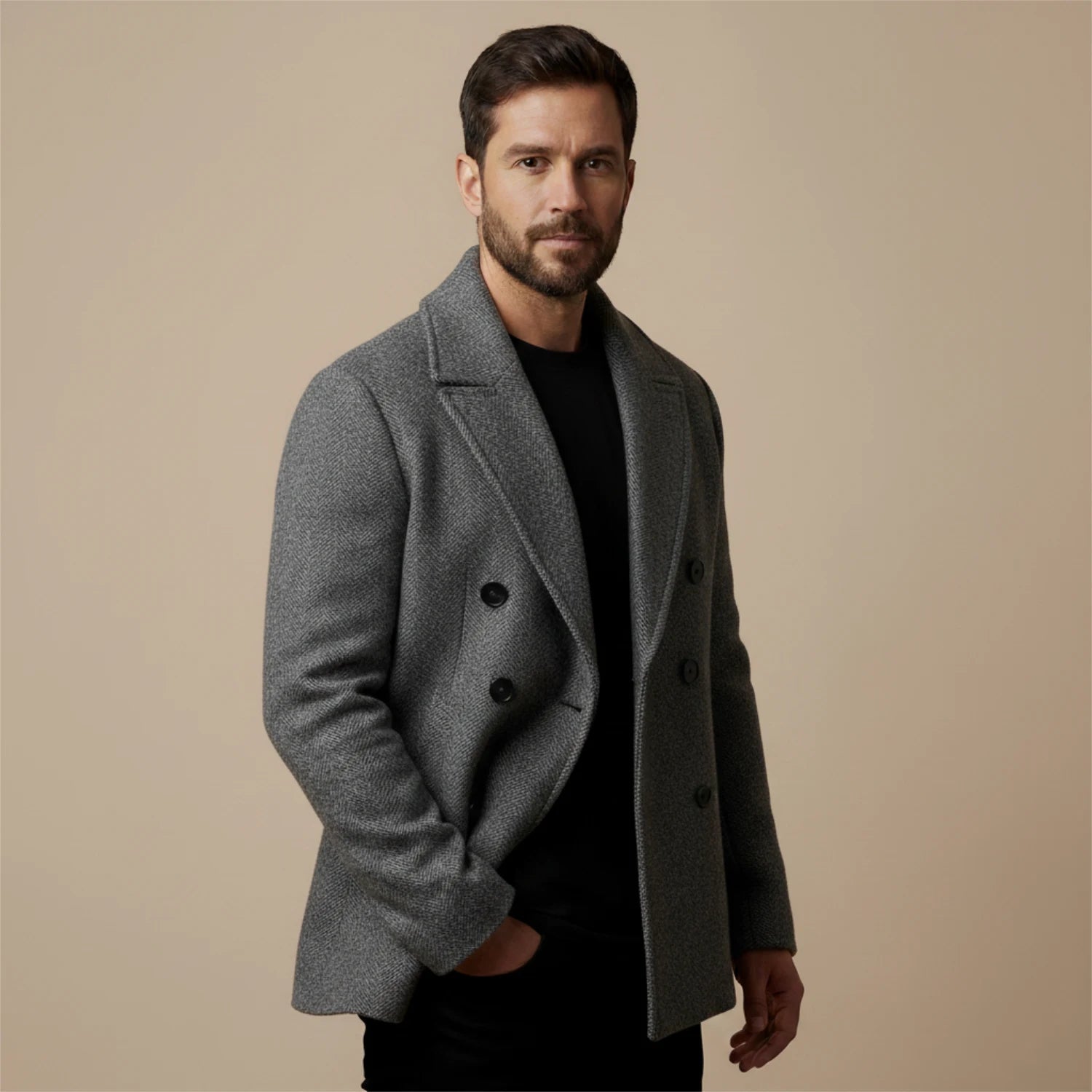Dieser Mantel wurde aus dichter Wolle geschnitten und hält Wind und Kälte ohne unnötiges Volumen ab. Die zweireihige Struktur und die breiten Revers verleihen Gewicht und Balance, während das glatte Innenfutter das einfache Überziehen und einen sauberen Fall gewährleistet.